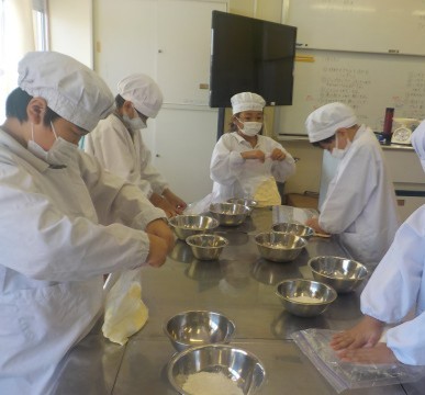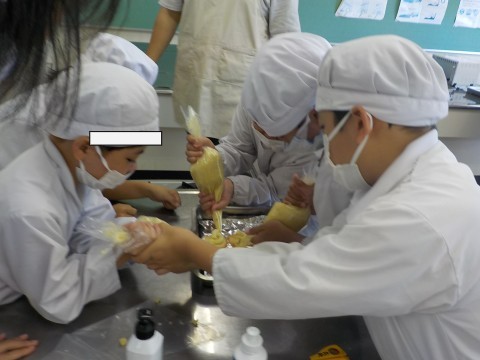 さつまいもを使って調理実習をしました。固いさつまいもを切るのに一苦労していました。