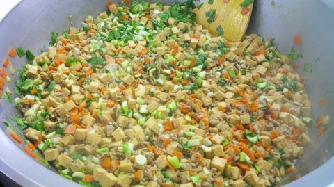 今日の給食はごはん、チャージャン豆腐、ごぼうサラダ、牛乳です。