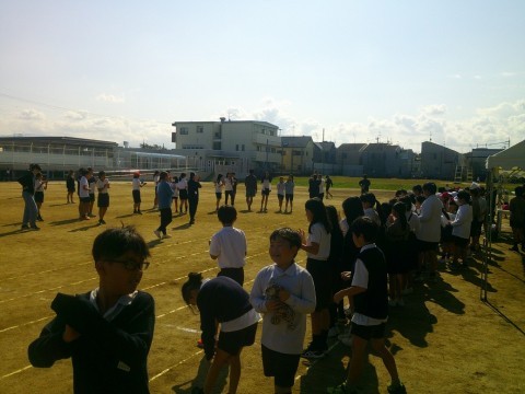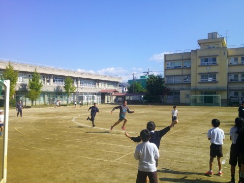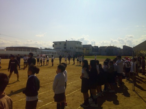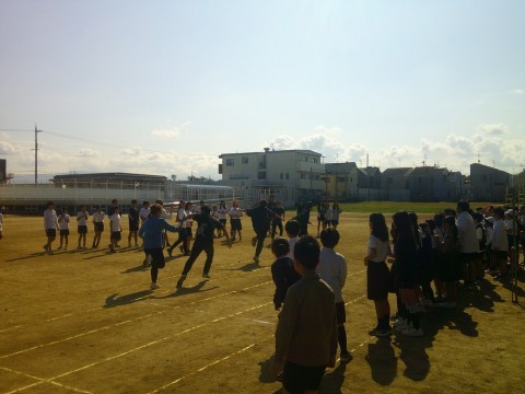 20分休みにリレーの選手は練習しています。今日は,見本に先生チームが走りました。バトンパス,力強い走りに子どもたちも刺激を受けていました。