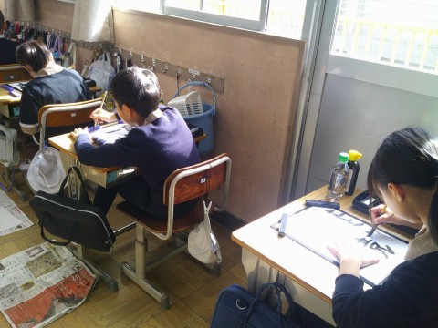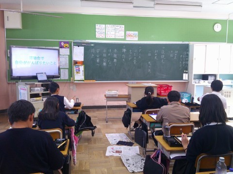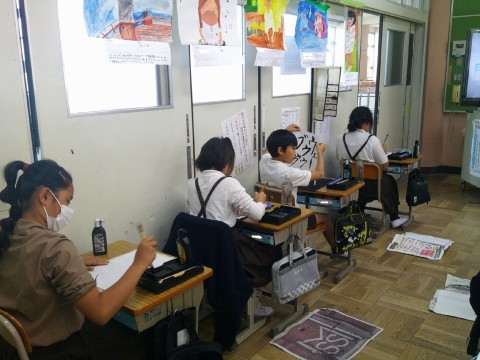 徒競走1位,白組優勝など,それぞれの気持ちのこもった字を書いていました。
