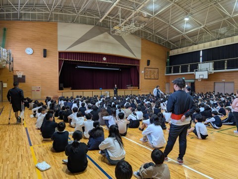 今日は全校朝礼がありました。校長先生からは,6年生の連合運動会,5年生の連合音楽会でのがんばりの報告。