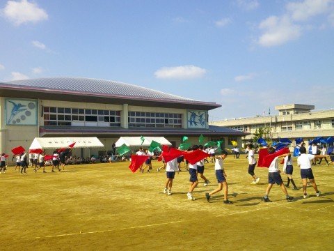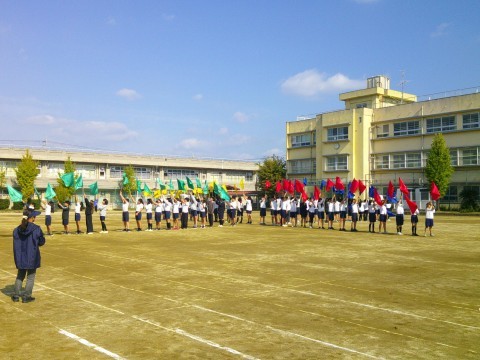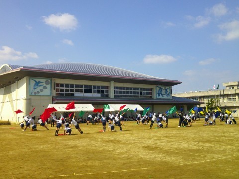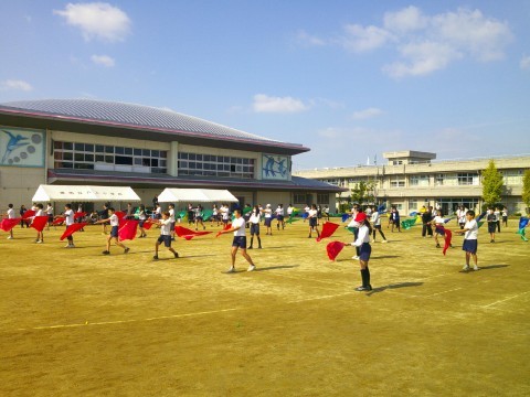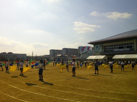 今日は,5・6年生でお互いの団体演技を見合いました。今までの中で一番集中して演技ができていました。