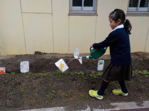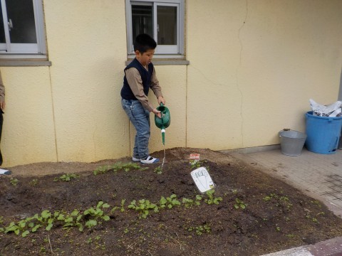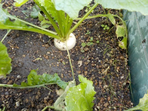 冬野菜に毎日欠かさず水やりをしています。実がなってきました。