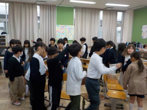 12月23日 3年生 公開日 2025/12/23 更新日 2025/12/23 3年 1組も2組もお楽しみ会をしていました。みんなで仲良く遊んでいます♪実行委員さんが司会の進行をしたり,場をまとめたりしていました。