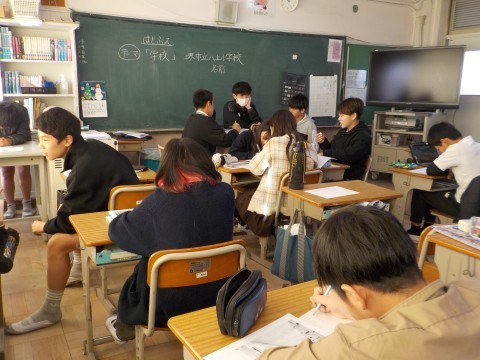 1組ははとぶえの絵を描いていました。テーマは「学校」です。6年生にもなると,遠近感も上手に絵で表していました。