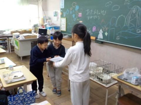 昨日,完食王ならぬ「完王(カンピオン)」に輝いたクラスに表彰状を渡しに行きました。