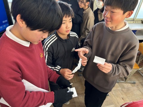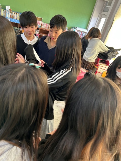 3学期がスタートしクラスでは,オリジナルポジティブおみくじを作り合って,みんなで引きました。