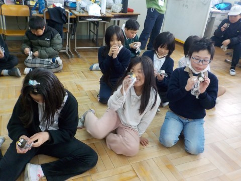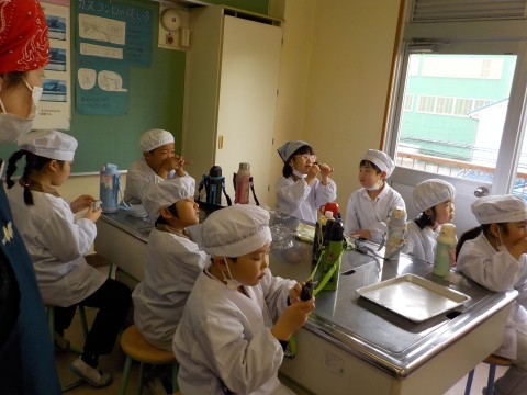 調理実習の後は,自分の作った恵方巻を食べました。みんなおいしそうに食べていました。