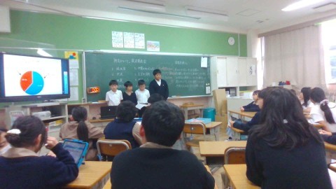 「防災について」学んだことを発表していました。どのクラスもアンケートをもとに実際に抽出したデータをもとに落ち着いて発表していました。
