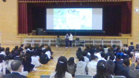 本日,本校で今年度取り組んだおむすびプロジェクトのクロージングミーティングを本校体育館で行いました。
