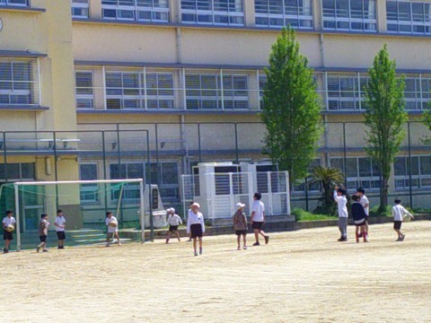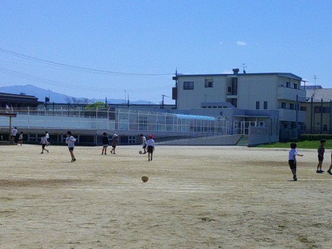 みんな運動場へ出てきてサッカーを楽しんでいます。