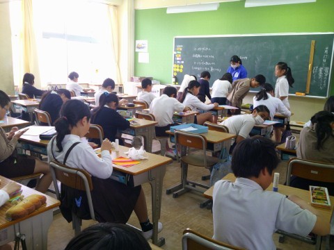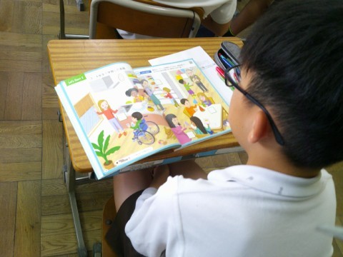 英語の授業は、リスニングでした。会話に合う教科書に書かれている絵を探します。
