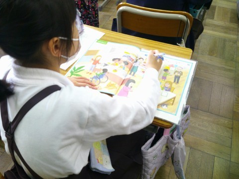 みんな静かに英語を聞き取って絵を探していました。