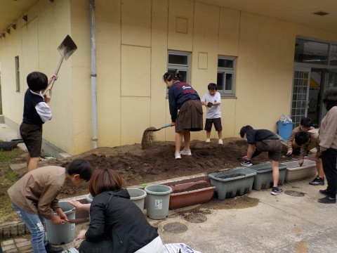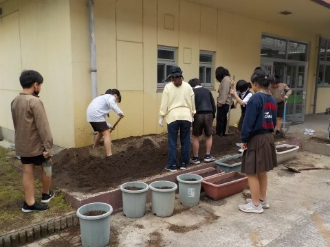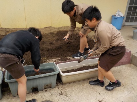 夏野菜を育てる準備をしました。土を運んだり,耕したり,みんな頑張っていました。