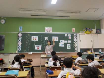 発育測定を行いました。その前に養護教諭の先生が保健室に来る時の約束や,けがをしたときについてのお話がありました。