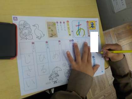 初めてのひらがな「あ」を学習しました。曲線もあり難しかったですが,みんな粘り強く取り組めていました。
