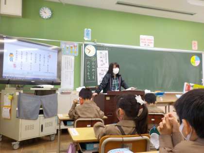 初めての音楽の授業がありました。楽しい音楽ゲームなど楽しく取り組めていました。