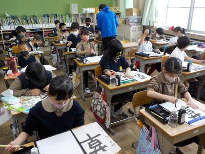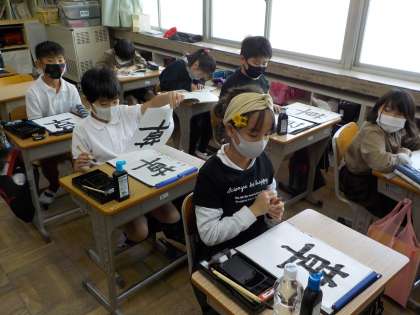 1組で一回目の習字を行いました。 集中して行うことができました。