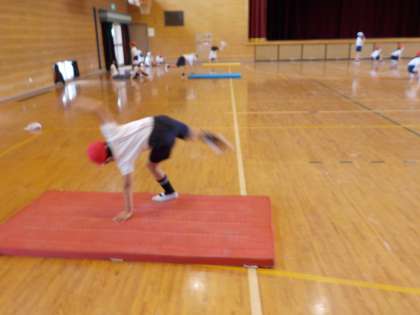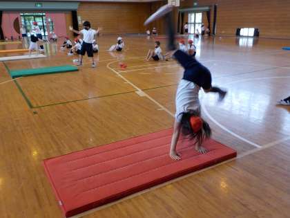 側転の練習を行いました。 手のつき方や体のバランスなどを意識しました。