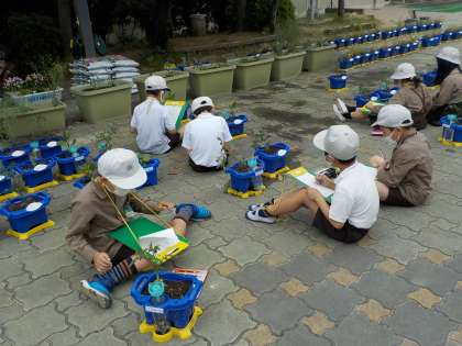 2-1 野菜のかんさつ 公開日 2021/05/12 更新日 2021/05/12 2年 今日は,野菜の観察をしました。 「花があるよ。」や「葉っぱがいっぱい。」など子どもたちが気付いたことをたくさん話したり,書いたりしていました。成長が楽しみです。