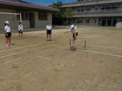 5年 体育 公開日 2021/05/13 更新日 2021/05/13 5年 体育の学習で「9秒間ハードル走」をしました。ハードルを4つ置き走りました。低くいハードルを跳ぶことができていました。4つでもうまく跳べることができてきました。