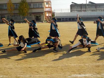 ソーラン節を踊っていると,6年生が「腰が低い」や「声が大きい」と,ほめてくれていました。