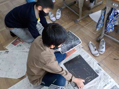 「ここもっと彫らなあかんなぁ!」「意外とうまくできてるわ!」と自分の出来栄えを確認する姿も見られました。