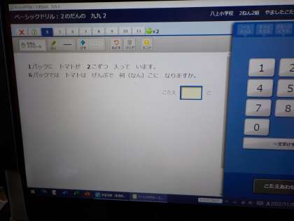 本日は2年生のタブレットの持ち帰り日です。学校でもどこが宿題なのかを確認しました。また,算数の九九マスターをして,九九の確認をしました。