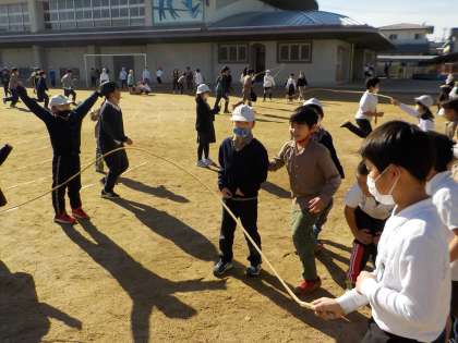 3年生が縄に入るタイミングを教えてくれました。そのおかげで,跳ぶことができました。