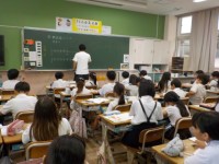 1組は理科で「日なたと日かげの地面の温度」の単元プリントをしていました。2組は算...