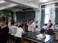 1組は理科で試験管を使って,空気を温めていく実験をしていました。シャボン玉はふく...