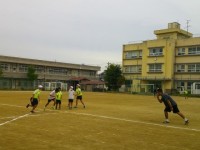 1組は体育でリレーのバトンパスを練習していました。チームに分かれてどうすればスム...