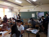 1組は,外国語でいろいろな動物を英語で発音していました。2組は,算数で円の面積の...