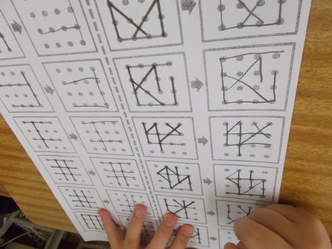 点つなぎのトレーニングです。細かいところの形を同じように写していくことができるためにトレーニングをします。