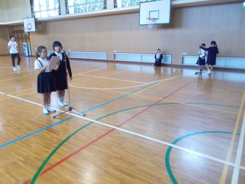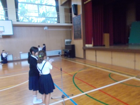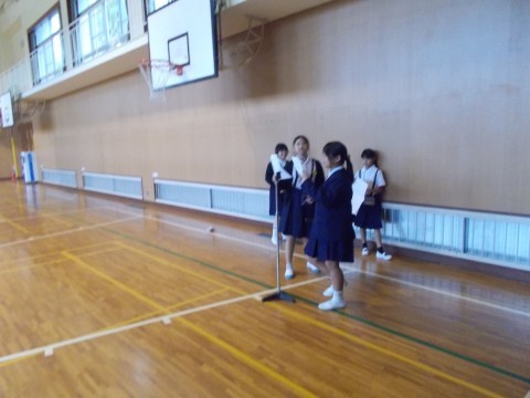 児童会5年生。来週の「連運壮行会」の司会の練習をしました。