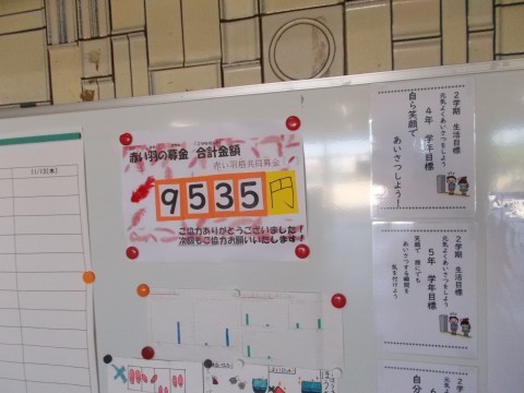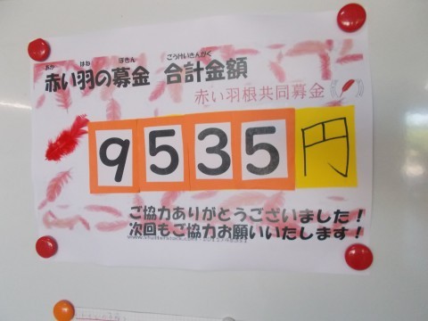 みなさまのご協力のおかげで、9535円もの募金が集まりました。
