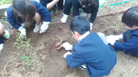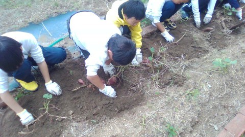 収穫が始まりました。予想をはるかに超える量のさつまいもがたくさん収穫でき、子どもたちも驚いていました。今後は1〜2週間ほど寝かせてから、焼き芋にして味わいたいと考えています。