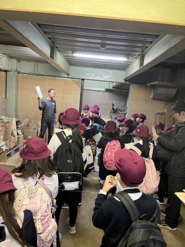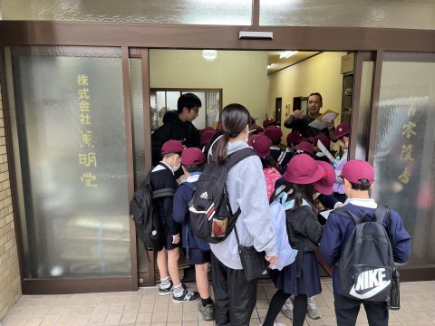 薫明堂に到着しました。線香作りの見学をしていきます。