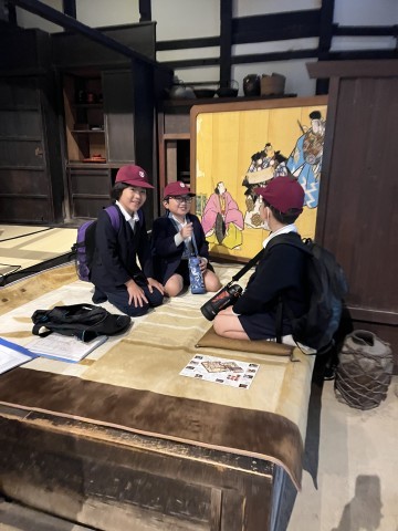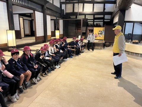 山口家住宅では、400年前からある家を見学しました。子どもたちはあまり見かけない造り方に興味をもって回っていました。
