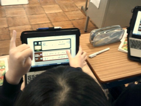 今日は,パソコンを使って音楽の授業をしていました。