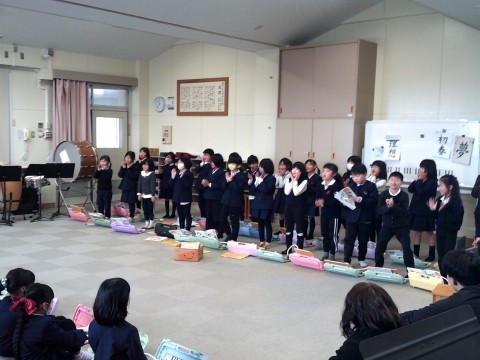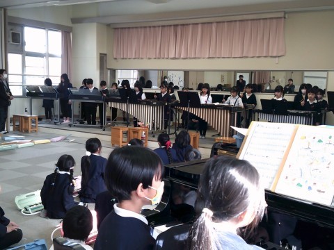 元気のいい歌とみんなで力を合わせて合奏ができていました。