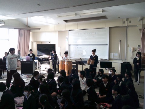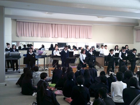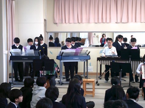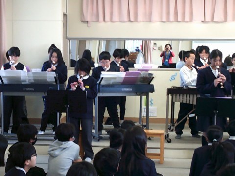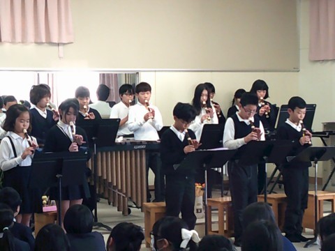 今日は6年生と今までの成果を伝えました。歌は「夢の世界を」リコーダー「君をのせて」合奏「キリマンジャロ」「アフリカンシンフォニー」でした。とてもじょうずに合奏し,元気に歌っていました。
