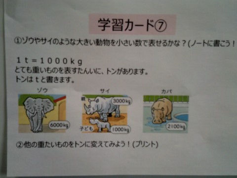 体感したり,はかりではかったりと楽しく学んでいます。