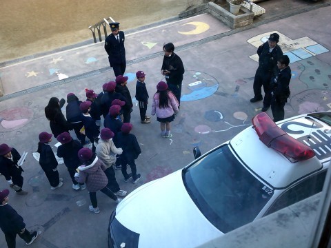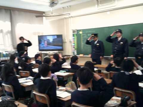 今日は黒山警察の方々が来られて,警察のお仕事などを