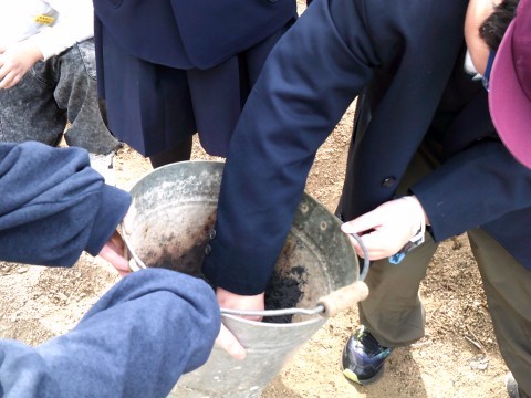 感動!その後は肥料を置いて重い鍬で土をかぶせました。