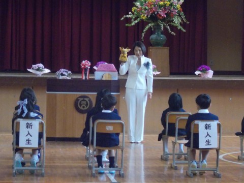 式では、校長先生からの”きらりん”の温かい歓迎の言葉が贈られました。1年生の皆さん,楽しい学校生活が始まります。これから大きく成長していきましょうね。