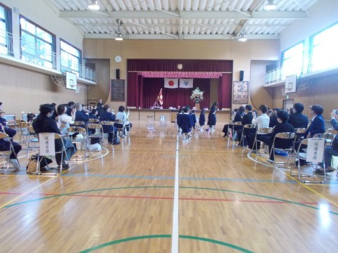 新しい制服に身を包んだ1年生たちは、少し緊張した面持ちながらも、これから始まる学校生活への期待に胸をふくらませている様子でした。