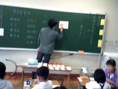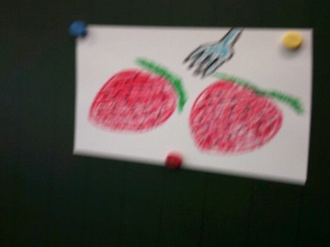 クレパスを使って自分の好きな食べ物を描いています。フルーツやケーキなど,可愛らしい絵がたくさん仕上がりました。