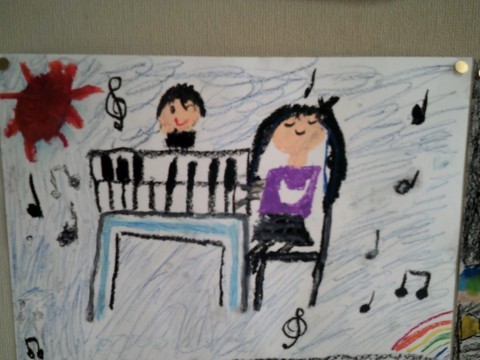 自分の好きなことを絵にしています。ピアノを弾くこと・花火を見ること・お花見をすること…とても可愛らしい絵が仕上がっていますね。