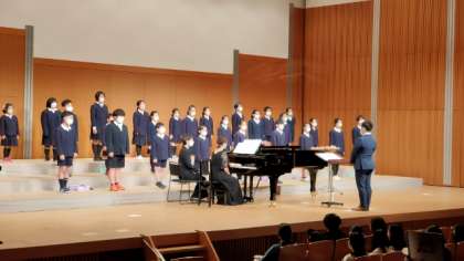 校長先生のあいさつの後,前半の部がスタートしました。一曲目はNHK全国学校音楽コンクールでの課題曲「好奇心のとびら」です。満員のお客さんの前で、堂々と歌う姿が素敵でした。